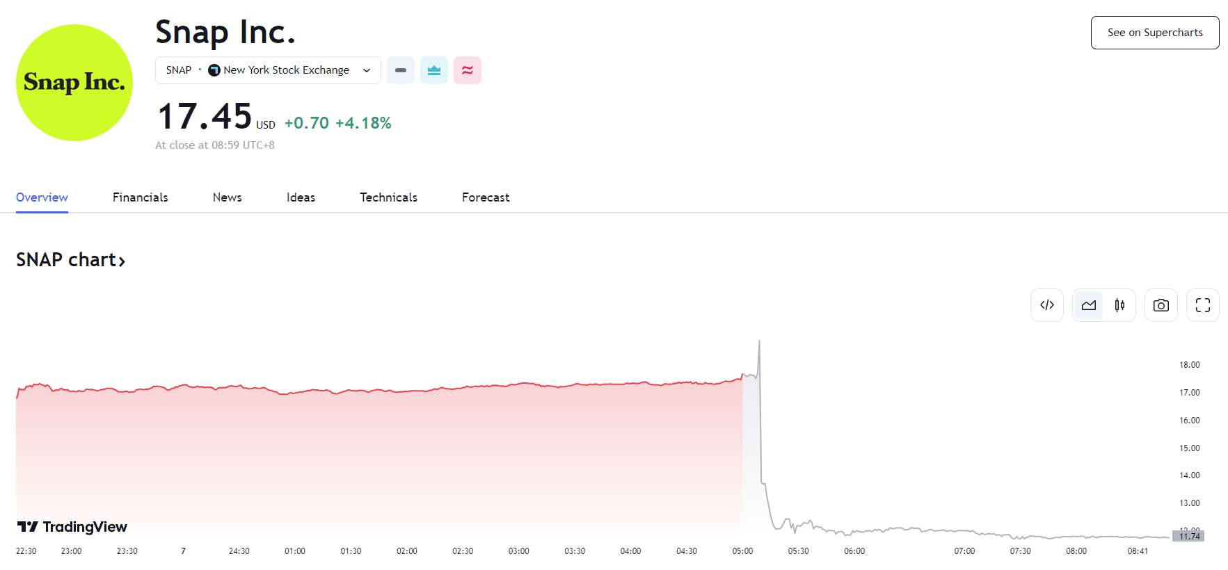Snap 财报逊色,盘后暴跌逾 32%