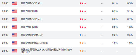 盈透证券表示:市场估值将下跌,市场希望美联储在 2022 年晚些时候停止加息,并可能在 2023 年初降息。加上上周五强劲的就业报告,这一 CPI 数据可能会破坏市场情绪。在 CPI 数据公布前夕,美国三大股指齐跌,反映了市场的担忧情绪。