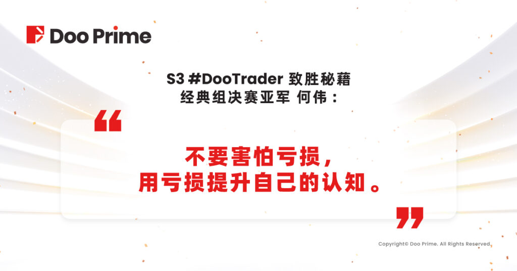 Doo Prime :我们举办 #DooTrader 交易大赛的目的就是发掘像您这样优秀的交易员,我们知道还有很多交易者,他们还在摸索和亏损中,您对他们有什么建议吗?