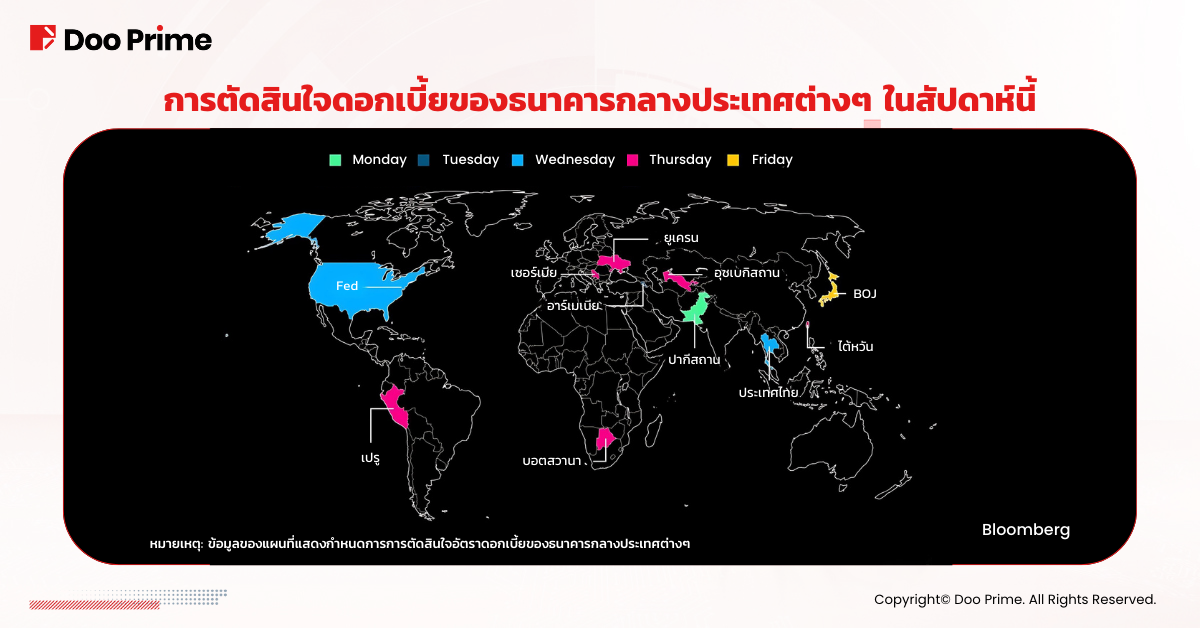สัปดาห์นี้ ธนาคารกลางหลายแห่งทั่วโลก รวมถึงปากีสถาน อาร์เมเนีย ไทย เซอร์เบีย ยูเครน อุซเบกิสถาน เปรู และบอตสวานา จะดำเนินการประชุมนโยบายการเงิน โดยเฉพาะอย่างยิ่งการมุ่งเน้นที่ธนาคารกลางสหรัฐและธนาคารแห่งประเทศญี่ปุ่น