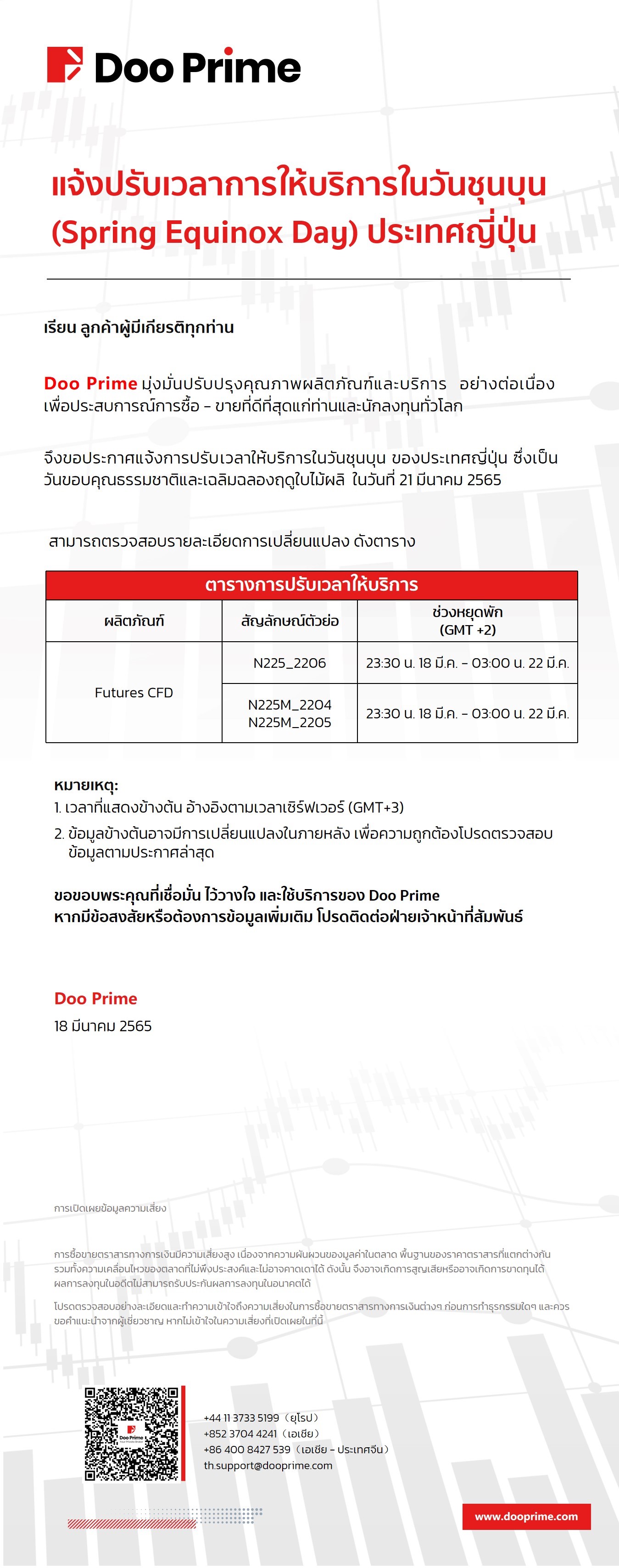 2022-03-18 | Spring Equinox Day , วันชุนบุน , แจ้งปรับเวลา