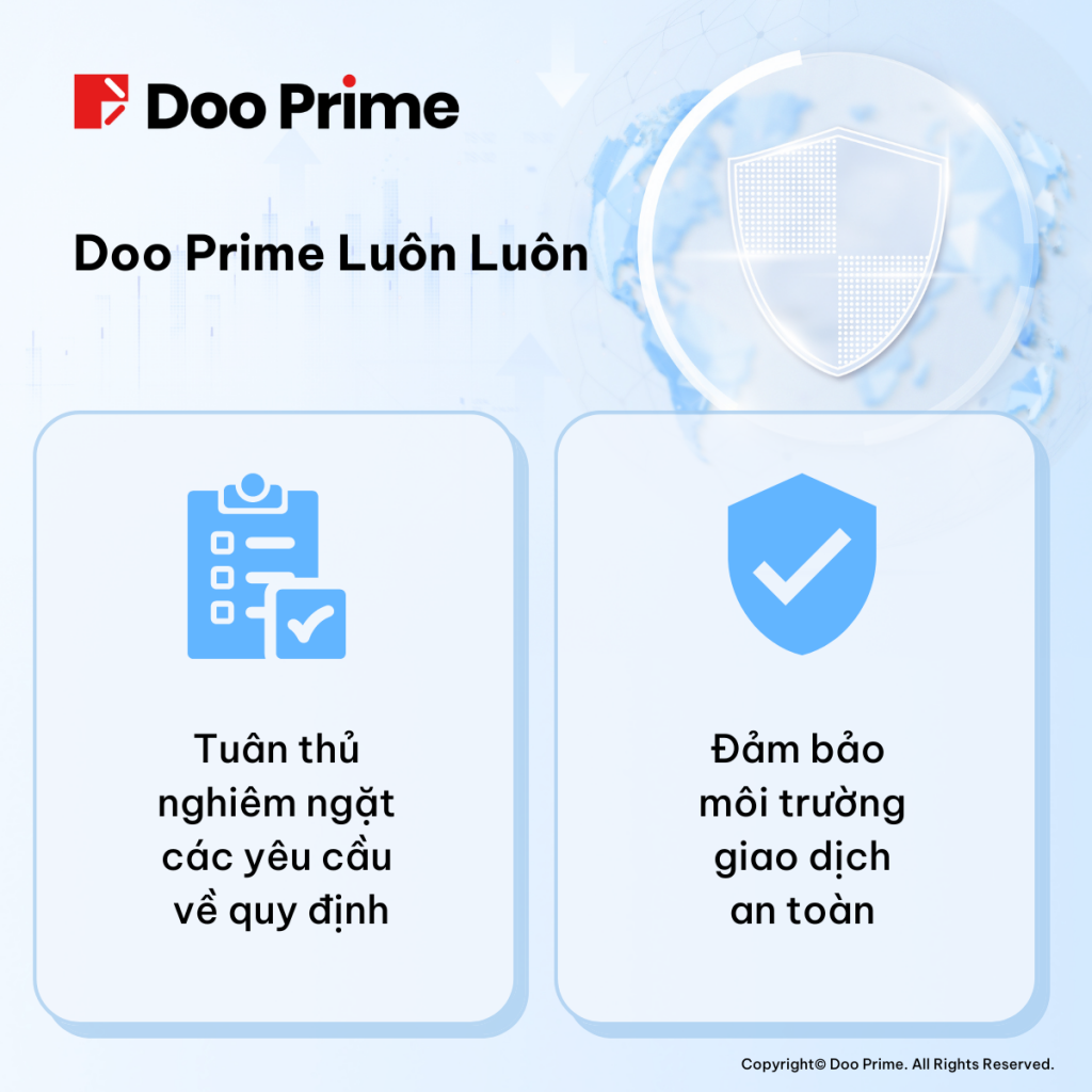 Nâng cao niềm tin của nhà đầu tư là chìa khóa để duy trì sự ổn định của thị trường. Tuy nhiên, trong thời kỳ đại dịch, suy thoái, chiến tranh và những thảm hoạ tương tự khác còn hiện diện, niềm tin của nhà đầu tư nhiều khả năng bị giảm sút. Chính vì thế, cần có các quy định hiệu quả nhằm đảm bảo tính công bằng cùng trách nhiệm giải trình trong tất cả các hoạt động trên thị trường tài chính. Nhân thức được điều này, Doo Prime đã nhanh chóng thực hiện các tiến trình theo quy định nhằm sở hữu hệ thống giấy phép tài chính từ các cơ quan có thẩm quyền hàng đầu trên toàn thế giới. Trên cơ sở đó, Doo Prime tự hào tạo ra môi trường giao dịch ổn định cho hơn 60.000 khách hàng toàn cầu.