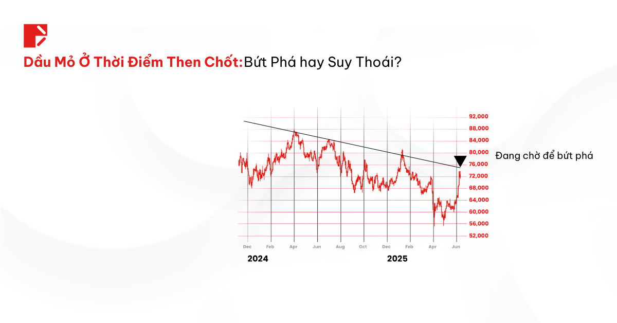 Về mặt kỹ thuật, dầu đang kiểm tra đường xu hướng giảm chủ chốt – vốn là ngưỡng kháng cự từ năm 2023. Nếu xác nhận bứt phá khỏi vùng này, thì mức giá của dầu có thể tiến nhanh về vùng 90–100 USD trong điều kiện được thúc đẩy bởi lực mua mạnh.